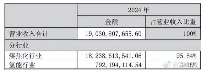 不过,从当前营收结构来看,氢能业务对公司的贡献仍较为有限,传统煤焦化业务仍是营收主力。