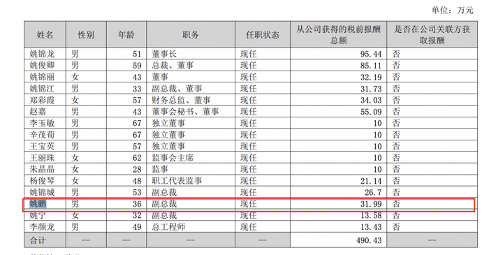 2024年年度报告显示,姚鹏从公司获得的税前报酬总额为31.99万元。
