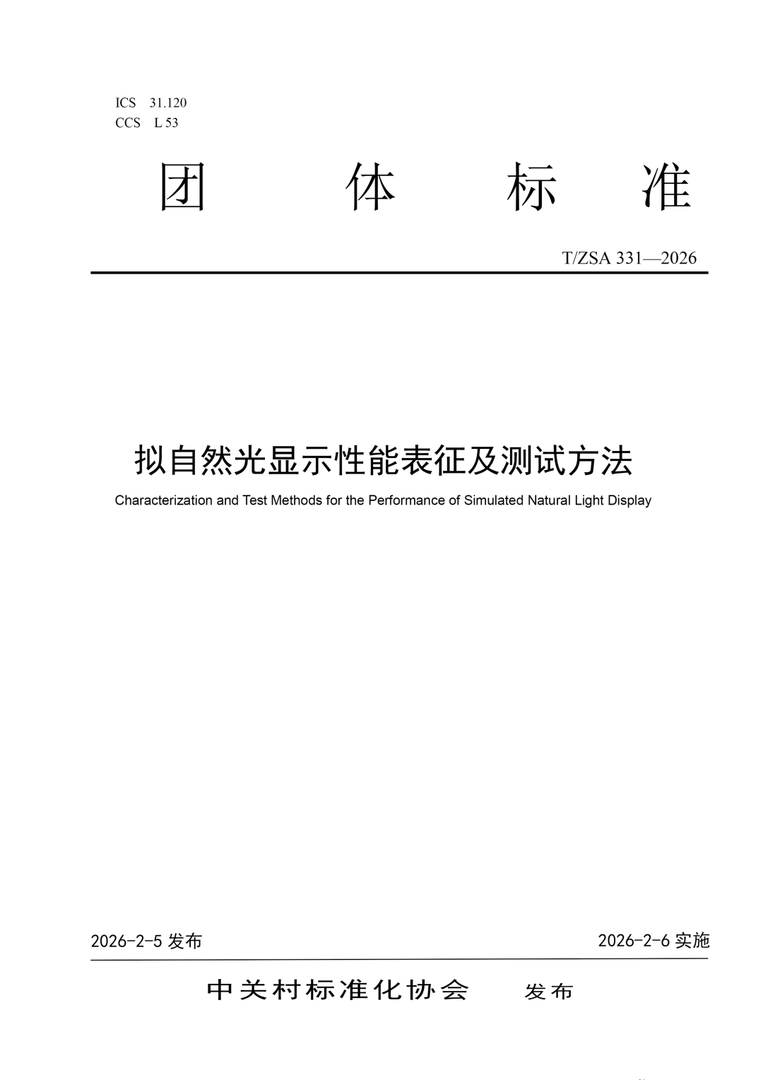 2月6日,由京东方牵头,联合产学研用生态伙伴共同主导制定的《拟自然光显示性能表征及测试方法》团体标准(T/ZSA 331—2026)正式发布。