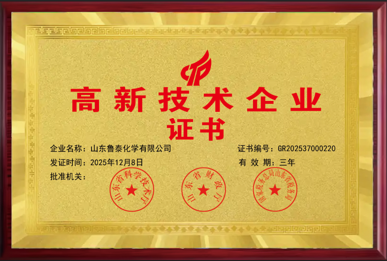 近日,经山东省科学技术厅、山东省财政厅、国家税务总局山东省税务局联合评审,且完成国家层面备案,山东鲁泰控股集团权属鲁泰化学公司获评2025年度国家级高新技术企业。这一资质的取得,是对鲁泰化学技术创新实力、科研成果转化能力及高质量发展潜力的国家级权威认可。