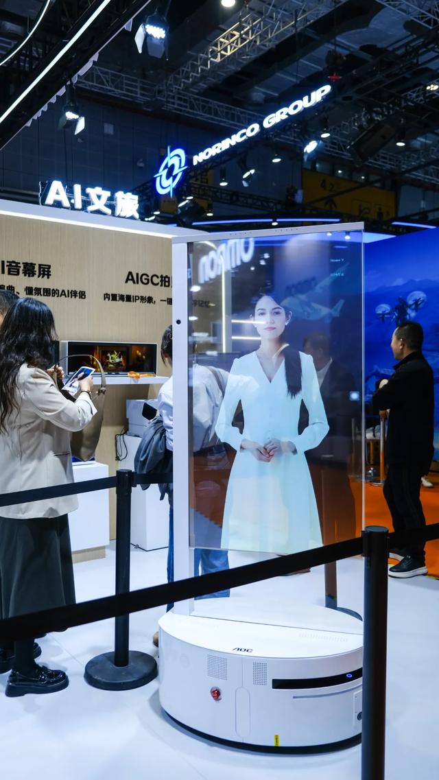 而位于同一区域内的移动数字人,则在现场扮演着引导、讲解和互动服务的角色,它拥有色彩艳丽、画质通透的OLED大屏,而且还可以在场馆内自由移动,与现场观众互动,是AI技术在文化景区、公共商业空间等场景中的交互应用升级,为大众带来了更加便利的现场服务体验。