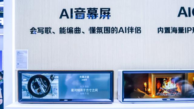 首先闯入视野的是给人带来震撼音效的AOC AI音幕屏,其AI作曲功能,让它具备了与众不同的音乐互动模式,通过上传任意图片,便可以在几分钟内根据图片信息生成专属BGM,让现场观众无不驻足聆听。区别于传统的蓝牙音箱,产品配备了高清数字大屏,支持歌词实时动态展示,还支持多款创意动态UI主题的切换和冥想功能,让屏幕画面可以随心变化。目前该产品在零售门店、酒店客房、家居休闲、博物馆、艺术展馆等多元场景中都有广泛应用。