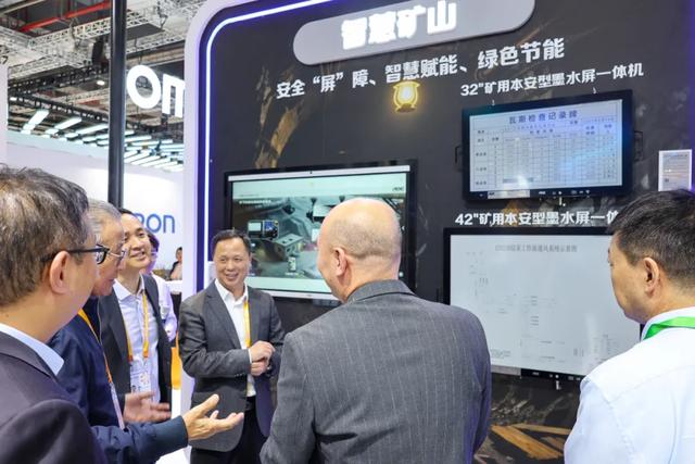 在本次展会上亮相的32”/42”矿用本安型墨水屏一体机,具备安全防爆、稳定耐用且清晰显示的特性,在任何情况下均不会引燃环境,可用于实时展示作业规程、安全措施与生产任务等关键信息,保障井下作业的安全性;