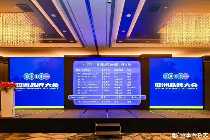 过硬的产品品质,为燕京啤酒赢得了市场的认可,也收获了行业的崇高荣誉。9月24日,世界品牌实验室亚洲品牌大会隆重发布了2025年《亚洲品牌500强》年度报告。燕京啤酒凭借其卓越的品牌影响力,蝉联亚洲品牌500强,位列总榜单第109位,彰显了燕京啤酒作为民族品牌的强劲实力,更向世界递出了一张闪耀的“中国名片”。