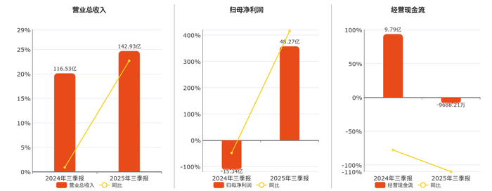 公司截至2025年9月30日,*ST中地营业总收入为142.93亿元,在已披露的同业公司中排名第14,较去年同报告期营业总收入增加20.22亿元,实现2年连续上涨,同比较去年同期上涨16.48%。截至2025年9月30日,*ST中地归母净利润为48.27亿元,在已披露的同业公司中排名第1,较去年同报告期归母净利润增加63.16亿元。截至2025年9月30日,*ST中地经营活动现金净流入为-9688.21万元。