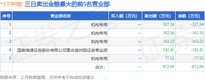 11月6日*ST中地(000736)龙虎榜数据:机构净卖出729.64万元(3日)