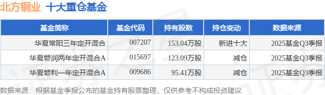 根据2025基金Q3季报公募基金重仓股数据,重仓该股的公募基金共3家,其中持有数量最多的公募基金为华夏基金的华夏常阳三年定开混合。华夏常阳三年定开混合目前规模为5.64亿元,最新净值1.0559(12月25日),较上一交易日下跌0.07%,近一年上涨18.18%。该公募基金现任基金经理为孙轶佳。孙轶佳在任的基金产品包括:华夏新兴消费混合A,管理时间为2018年11月7日至今,期间收益率为105.47%;华夏新兴经济一年持有混合A,管理时间为2021年7月27日至今,期间收益率为3.31%;华夏优加生活混合A,管理时间为2021年9月23日至今,期间收益率为-26.57%;