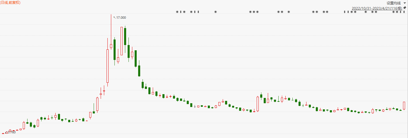 山东新华制药在2022年10月31日到同年的12月13日期间的股价涨幅达到259.06%,最高报17港元。但随后股价出现调整。目前股价处于7港元附近。
