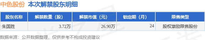 中色股份(000758)3.72万股限售股将于10月16日解禁,占总股本0%