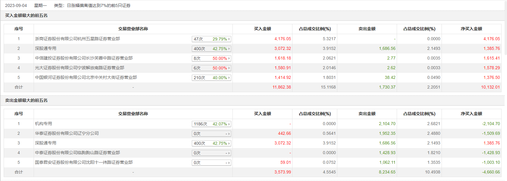 9月4日,通化金马今日涨停,龙虎榜数据显示,上榜营业部席位全天成交2.06亿元,占当日总成交金额比例为26.31%。其中,买入金额为1.24亿元,卖出金额为8278.47万元,合计净买入4085.59万元。
