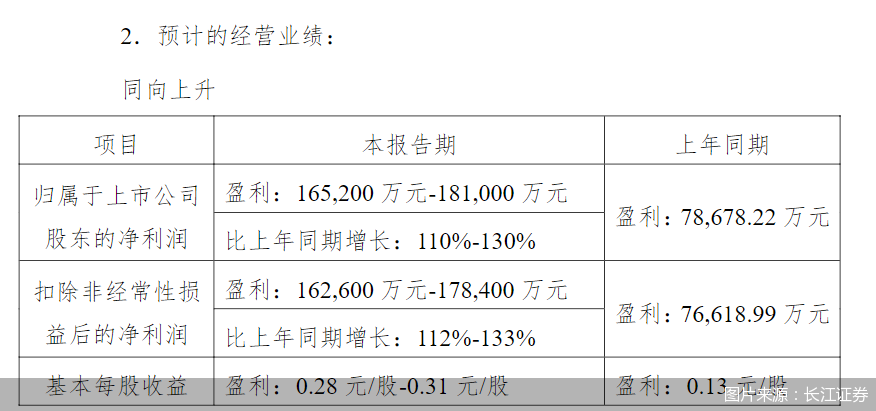 发布半年度业绩预告,上半年预计归母净利润盈利16.52亿—18.1亿元,同比增长110%—130%。