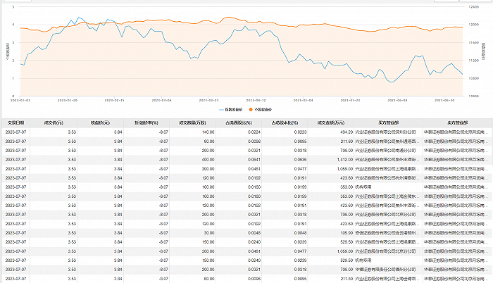 7月7日大宗交易成交7306万股,成交额2.58亿元,占当日总成交额的83.96%,成交价3.53元,较市场收盘价3.84元折价8.07%。