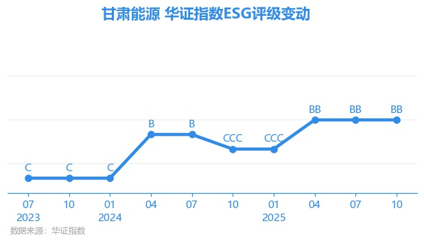 日前,华证指数公布了新一期(2025年10月31日)的ESG评级结果,甘肃能源(000791.SZ)获得BB评级(华证指数评级为C起至AAA九档,C为最低档,AAA为其最高一级评级/AA为其第二档),上一期(2025年7月31日)ESG评级为BB。本期ESG评级在58家电力公用事业行业A股上市公司中排名第23(上一期排名第27)。