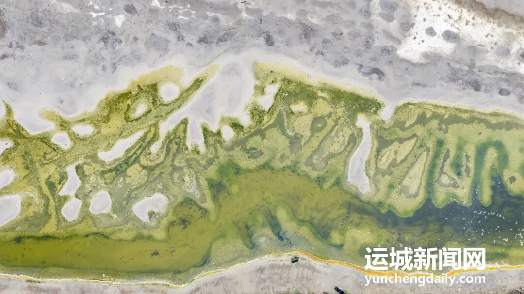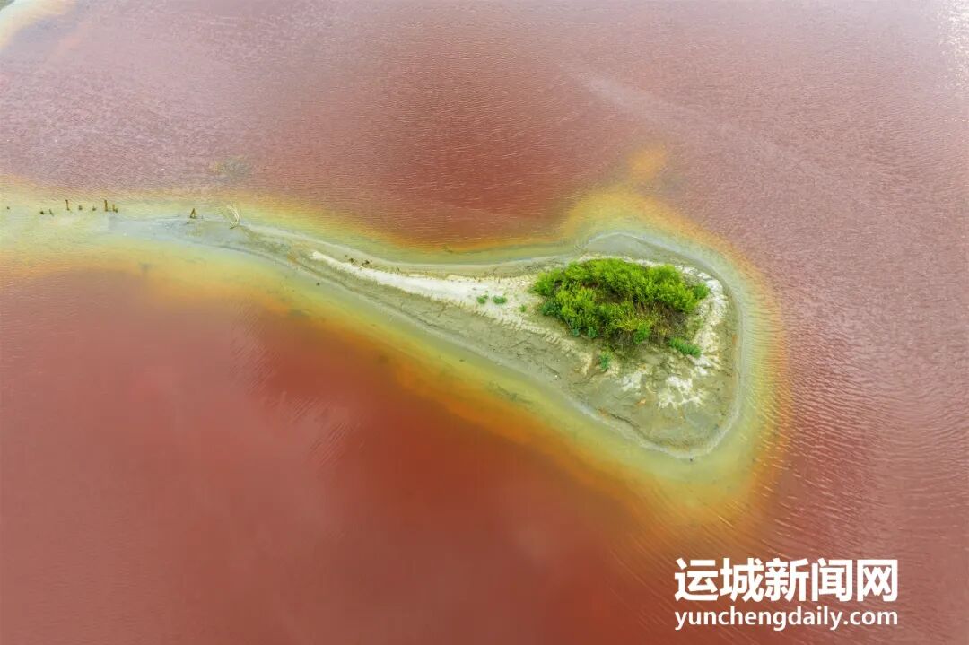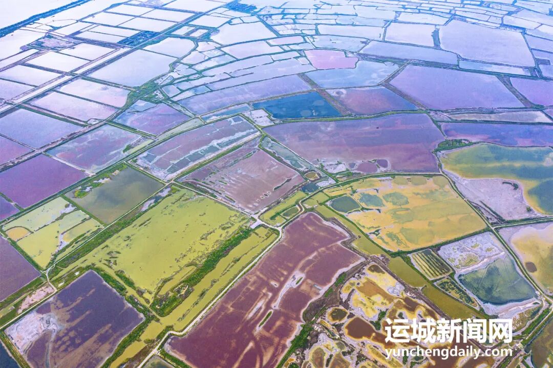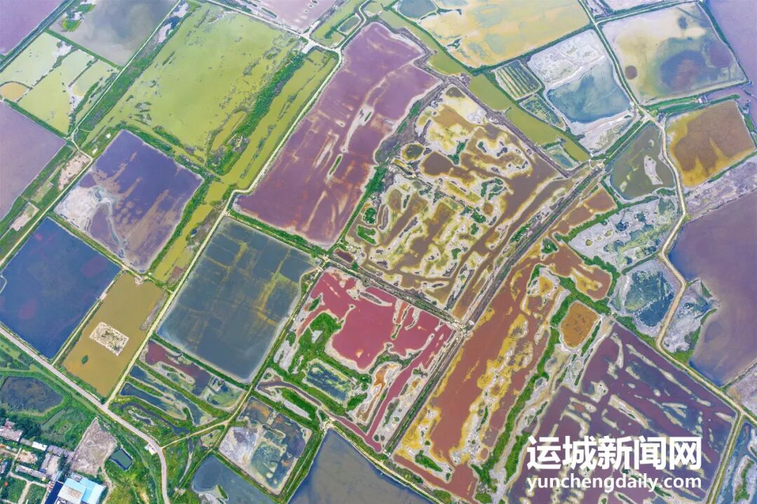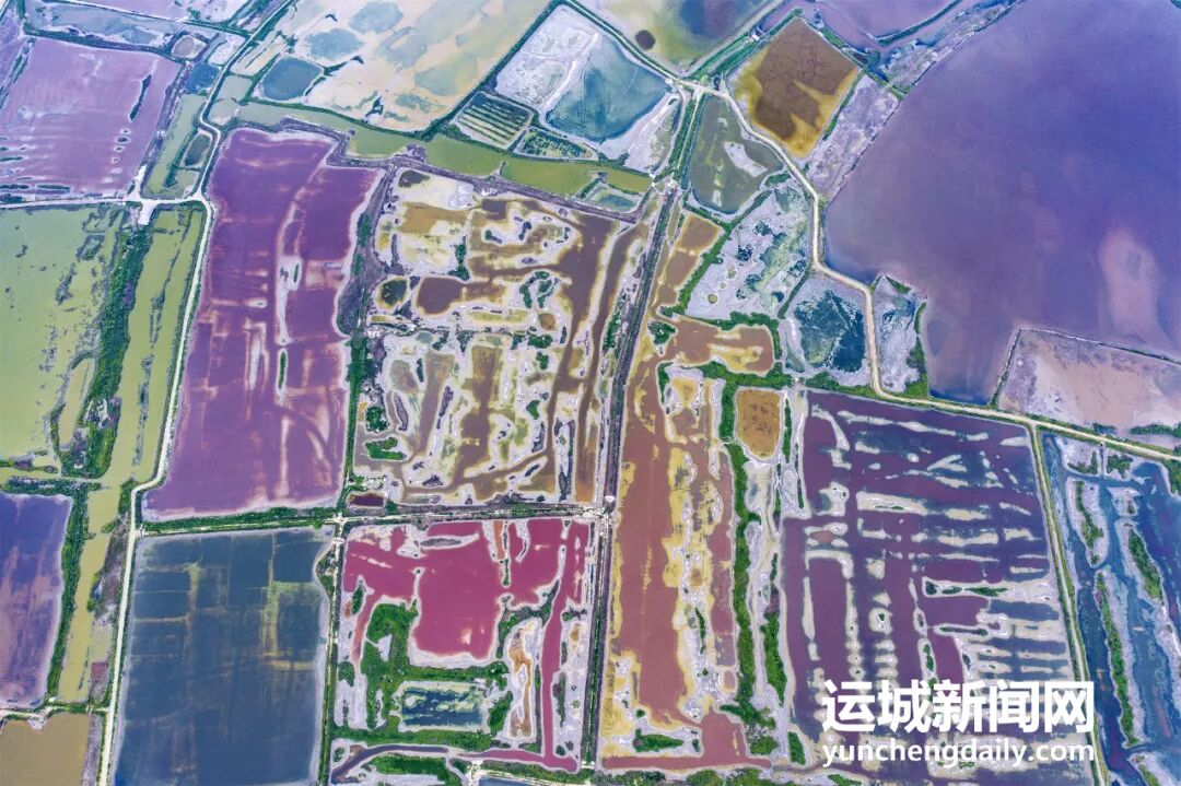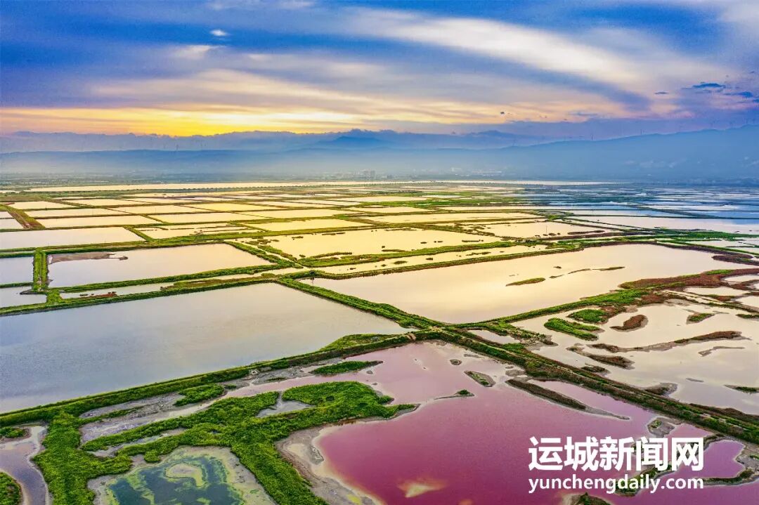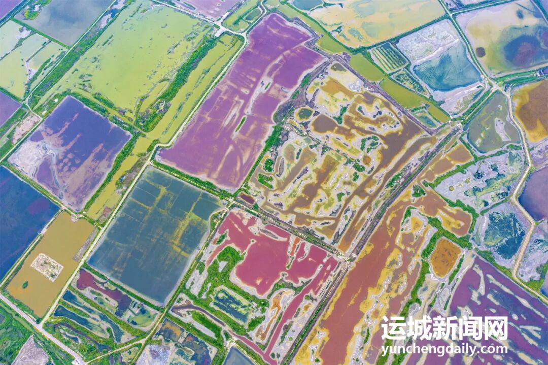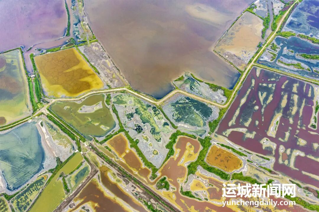 9月2日,随着季节变化,运城盐湖呈现出色彩斑斓的美景。