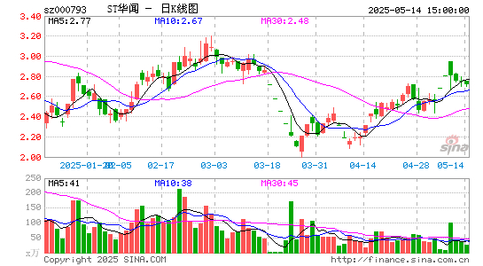 5月14日,ST华闻(000793)延续前一交易日弱势行情,截至当日收盘,公司股价报2.72元/股,跌幅达1.09%。
