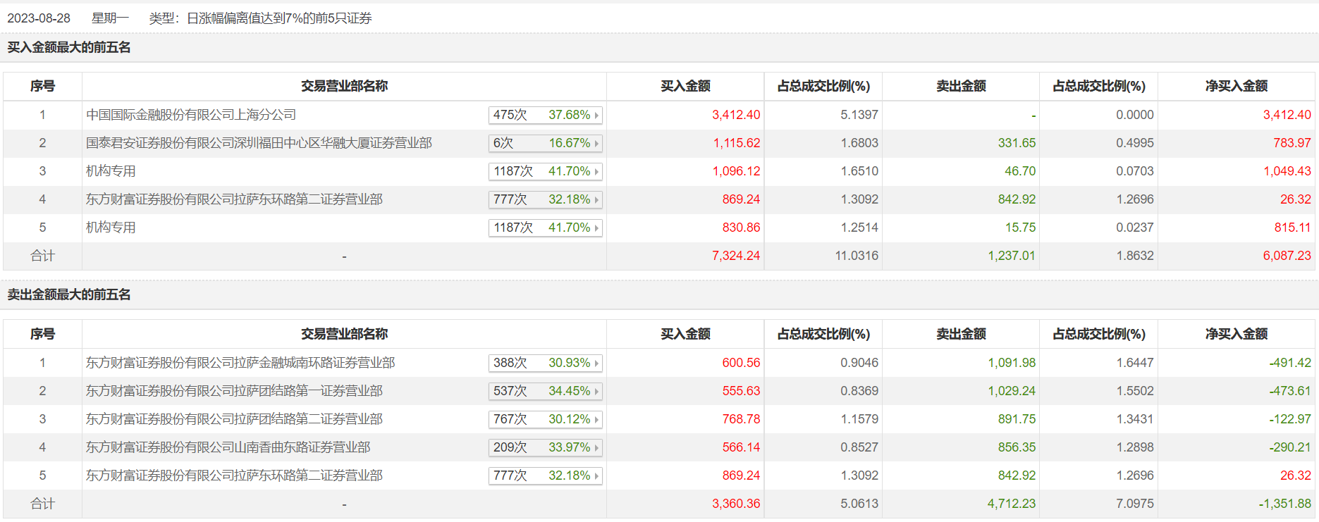 具体来看,机构买入1926.98万元,卖出62.44万元,合计净买入1864.54万元。此外,中国国际金融上海分公司、国泰君安证券深圳福田中心区华融大厦证券营业部分别买入3412.40万元、1115.62万元;东方财富证券拉萨金融城南环路证券营业部、东方财富证券拉萨团结路第一证券营业部分别卖出1091.98万元、1029.24万元。
