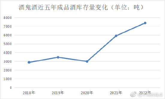 年报显示,2019年至2022年,酒鬼酒的库存量由3460吨攀升至7375吨。以内参酒为例,2022年内参系列生产量1580吨,销售量1147吨,产明显大于销。期末库存量达1347吨,已超过全年销量。