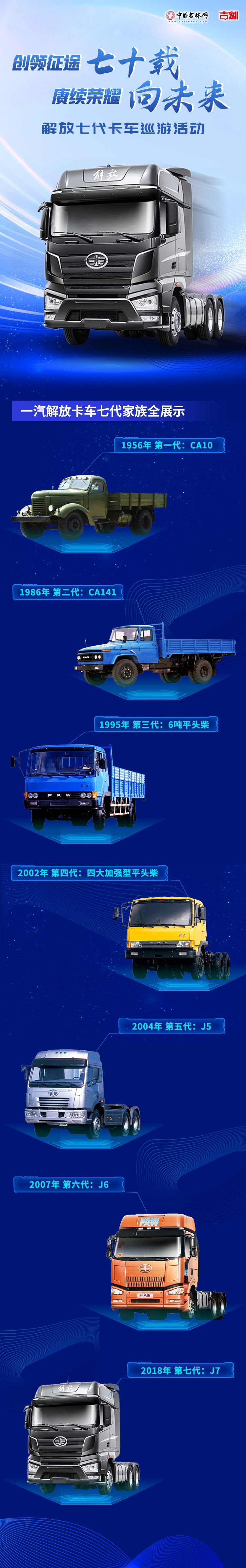 70年间,从新中国第一辆解放卡车CA10,到最新的智能卡车解放J7,辉煌70年,