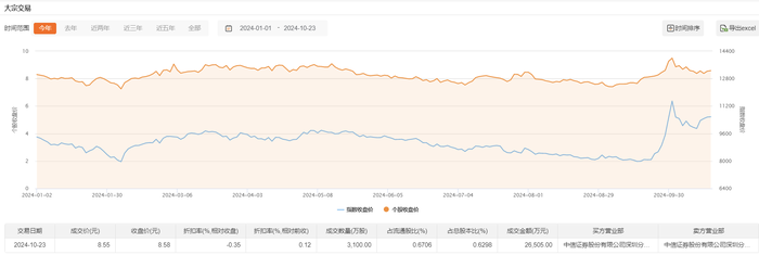 今日大宗交易成交3100万股,成交额2.65亿元,占当日总成交额的45.5%,成交价8.55元,较市场收盘价折价0.35%。