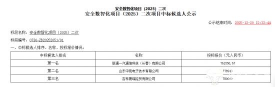 日前,一汽解放“安全数智化项目”在经历了二次招标后,终于公布了中标候选人名单!具体什么情况?