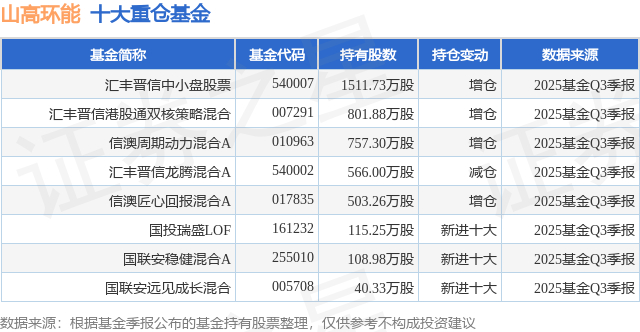 根据2025基金Q3季报公募基金重仓股数据,重仓该股的公募基金共8家,其中持有数量最多的公募基金为汇丰晋信基金的汇丰晋信中小盘股票。汇丰晋信中小盘股票目前规模为14.93亿元,最新净值3.4681(11月6日),较上一交易日上涨0.89%,近一年上涨38.69%。该公募基金现任基金经理为郑小兵。郑小兵在任的基金产品包括:汇丰晋信港股通双核策略混合,管理时间为2024年9月14日至今,期间收益率为78.24%。