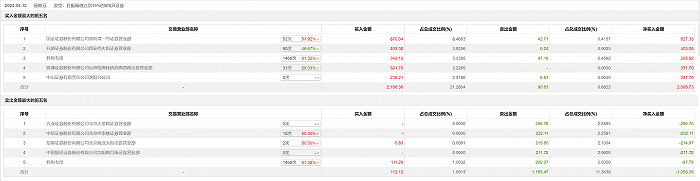 具体来看,机构买入454.39万元,卖出256.25万元,合计净买入198.14万元。此外,兴业证券北京大望路证券营业部、中信证券北京呼家楼证券营业部分别卖出296.76万元、232.11万元;国金证券深圳湾一号证券营业部、开源证券西安西大街证券营业部分别买入870.04万元、403.32万元。