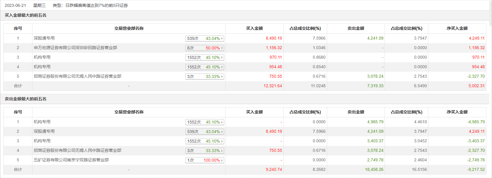 具体来看,机构买入1924.59万元,卖出8389.16万元,合计净卖出6464.57万元。此外,深股通专用、招商证券无锡人民中路证券营业部分别卖出4241.09万元、3078.24万元;深股通专用、申万宏源证券有限公司深圳彩田路证券营业部分别买入8490.19万元、1156.32万元。