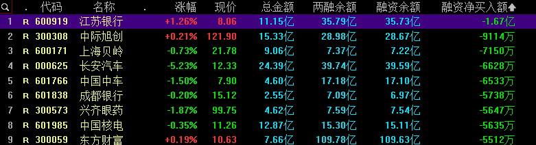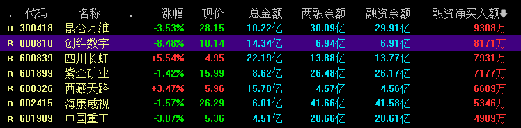 其中,昆仑万维(维权)获融资净买入额居首,净买入9308万元;融资净买入金额居前的还有创维数字、四川长虹、紫金矿业,净买入额分别为8171万元、7931万元、7177万元。江苏银行、中际旭创、上海贝岭净卖出居前,金额分别为1.67亿元、9114万元、7150万元。