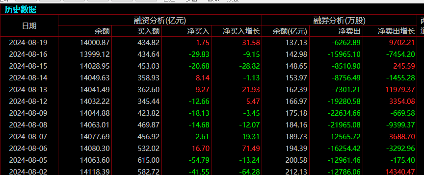 同花顺数据显示,8月19日,融资余额14000.87,融资净买入1.75亿元,融券余额137.13亿元。共有1703只个股获融资净买入,净买入金额在千万元以上的有127只。