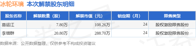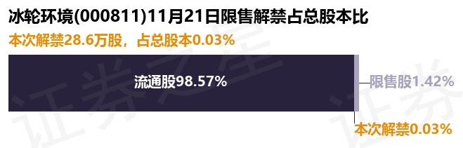 冰轮环境(000811)28.6万股限售股将于11月21日解禁,占总股本0.03%