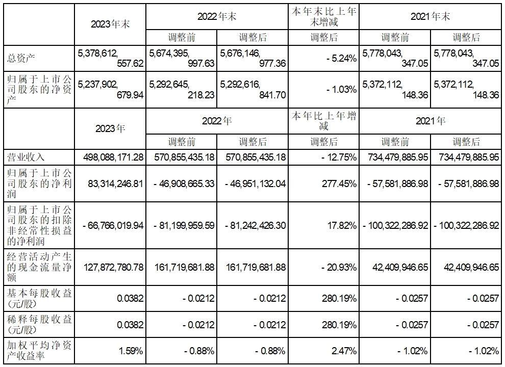 2023年,公司实现归母净利润8,331.42万元,同比增长277.45%。截至期末,公司资产总额537,861.26万元,较上期期末下降5.24%;