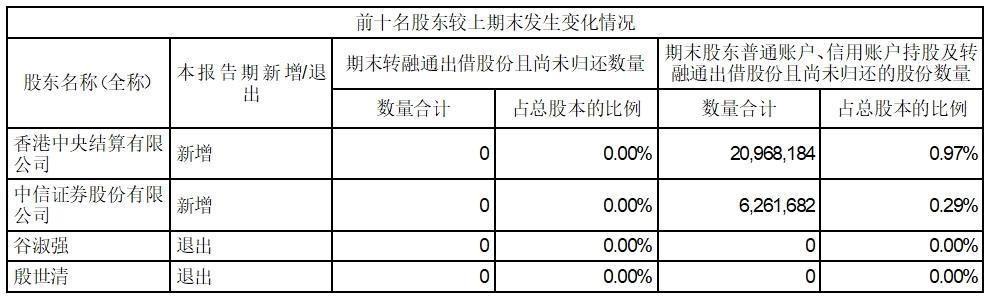 前十名股东较上期发生变化