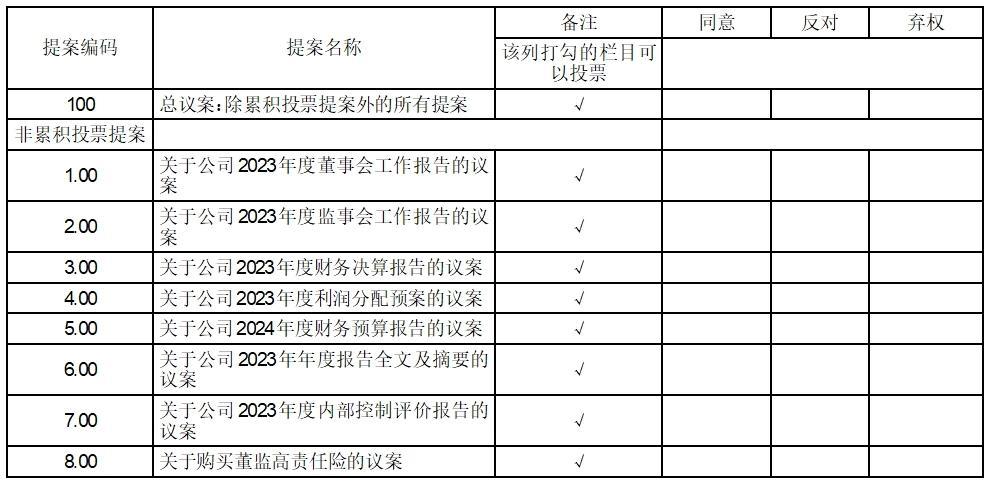 对于本次股东大会议案(均为非累积投票议案),填报表决意见:同意、反对、弃权。
