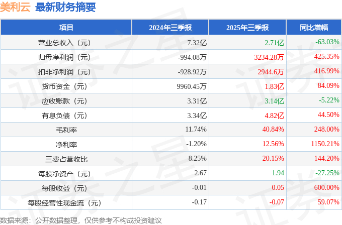美利云(000815)2025年三季报简析:净利润同比增长425.35%,三费占比上升明显