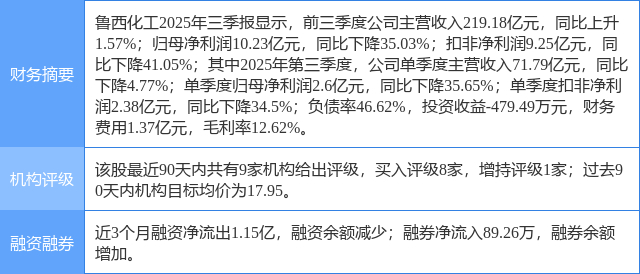 今日鲁西化工(000830)涨9.99%,收盘报15.53元。