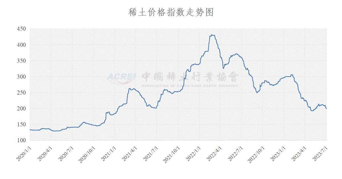 行业协会,7月3日,稀土价格指数报199.3,较上周五下跌3.7点。