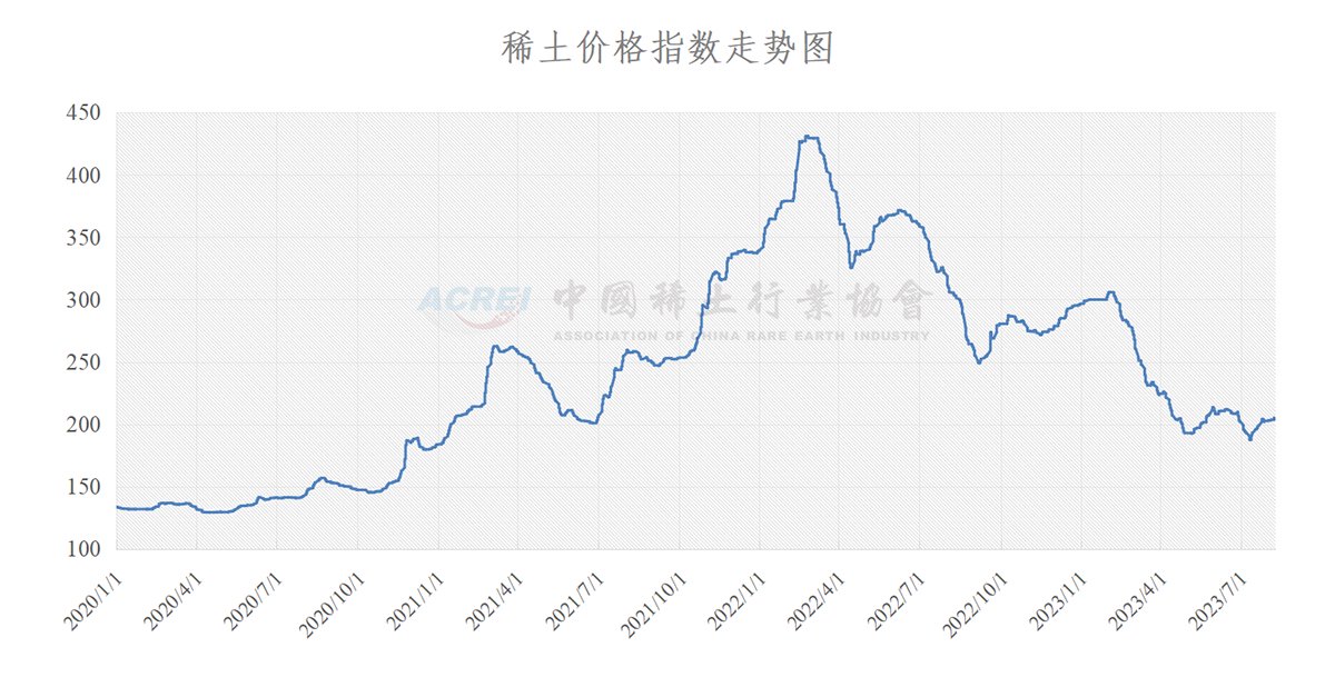 行业协会,8月8日,稀土价格指数报205.2,较前一日上涨1.1点。