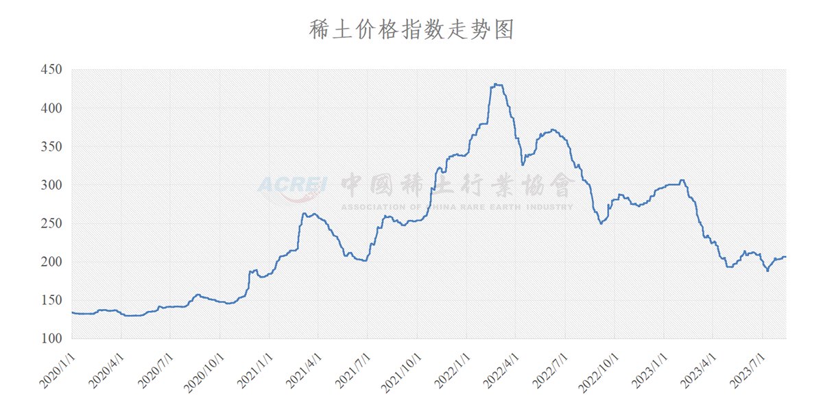 行业协会,8月14日,稀土价格指数报206.0,与上周五持平。