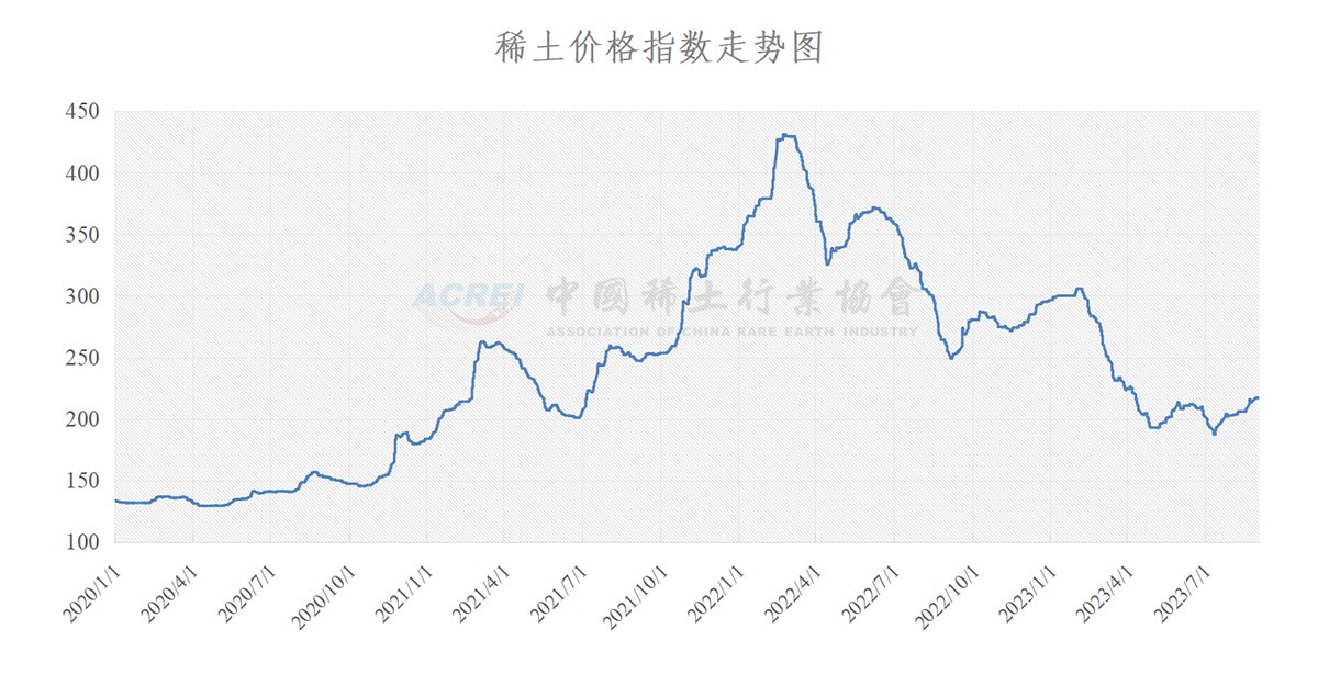 行业协会,9月1日,稀土价格指数报217.5,较前一日上涨0.5点。