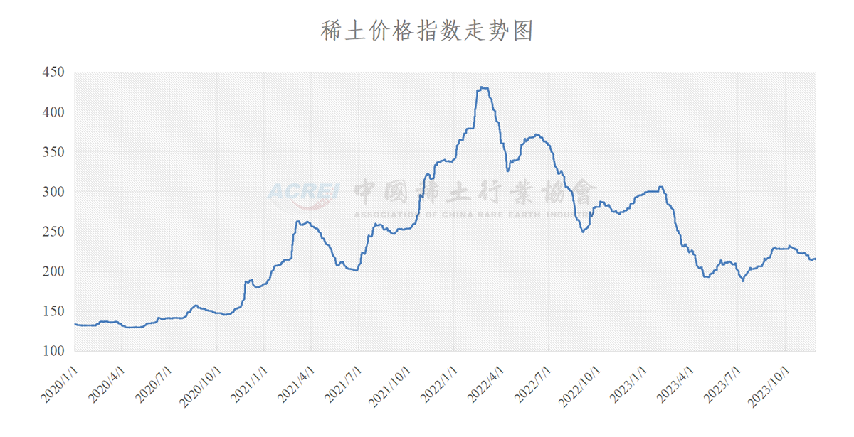 中国稀土行业协会:今日稀土价格指数报214.8,较昨日下跌0.7点