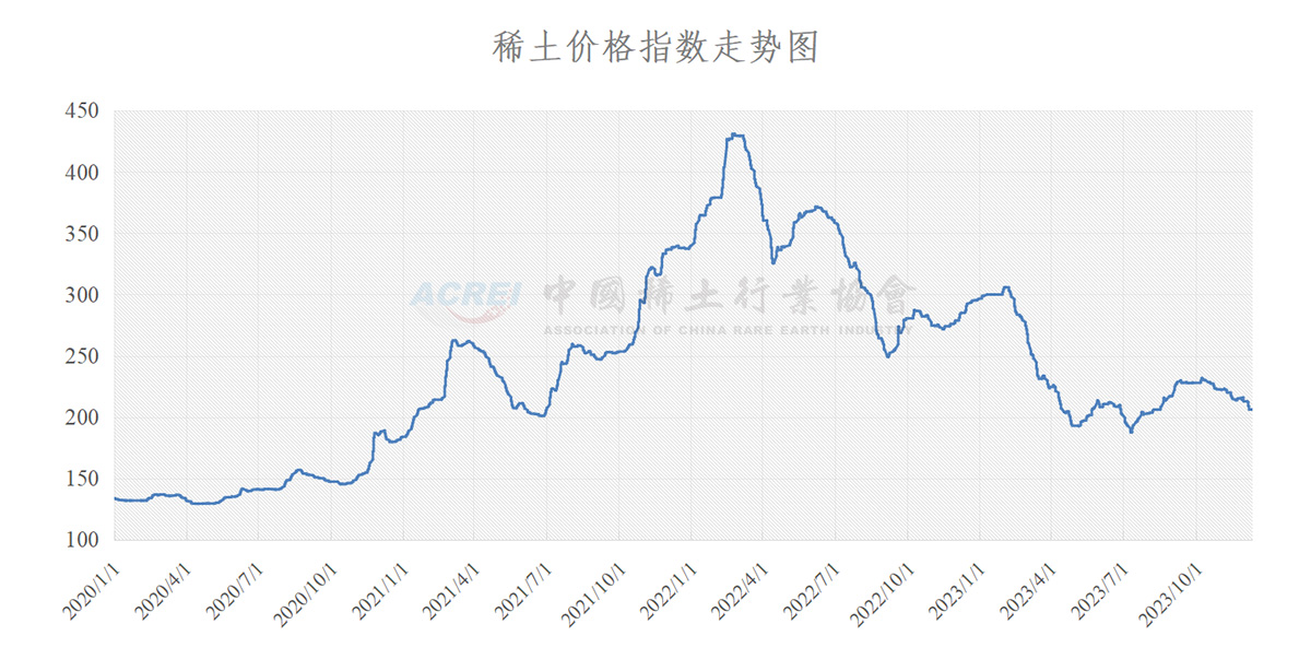 行业协会,12月11日,稀土价格指数报205.9,较上周五下跌0.2点。