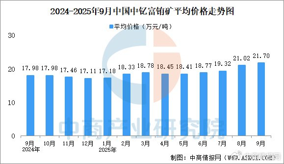 中钇富铕矿9月份均价为21.70万元/吨,环比上涨3.3%。