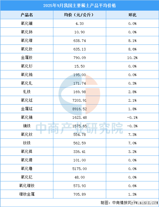 2025年9月中国稀土价格走势分析:价格指数基本平稳