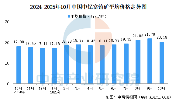中钇富铕矿10月份均价为20.18万元/吨,环比下跌7.0%。