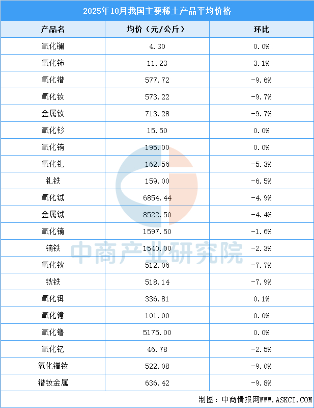 2025年10月中国稀土价格走势分析:价格指数呈下行趋势