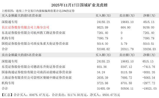 买入前5席为:深股通专用、长江证券股份有限公司上海分公司、东北证券股份有限公司杭州教工路证券营业部、机构专用、国投证券股份有限公司西安朱雀大街证券营业部。共计买入:53348.62万元,共计卖出:20311.79万元。