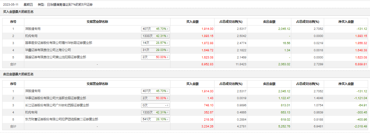 具体来看,机构买入2245.83万元,卖出653.13万元,合计净买入1592.7万元。此外,深股通专用、国泰君安证券福州华林路证券营业部分别买入1914.00万元、1872.88万元;深股通专用、华泰证券大连联合路证券营业部分别卖出2045.12万元、1122.47万元。
