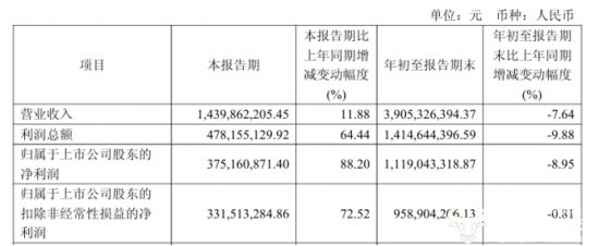 而在第三季度,养元饮品实现营业收入14.39亿元,同比增长11.88%,归母净利润为3.75亿元,同比上升88.20%,营收和利润双双增长。承德露露第三季度单季度营业收入为5.72亿元,同比增长9.91%,而归母净利润同比下滑0.28%至1.25亿元,呈现增收不增利的情形。