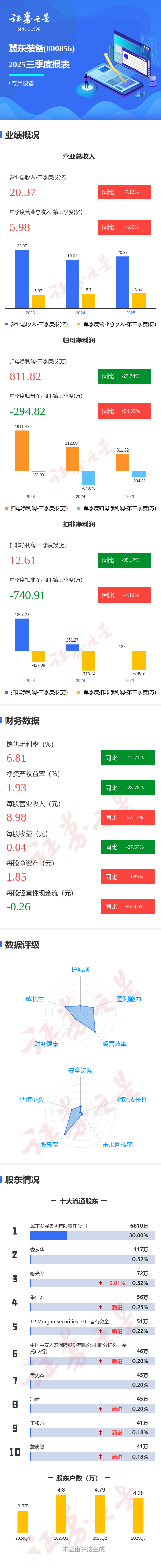 图解冀东装备三季报:第三季度单季净利润同比增长54.55%
