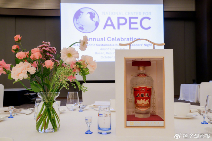 从韩国庆州艺术中心的峰会主题展台到釜山亚太可持续工商之夜晚宴现场,五粮液以千年酿造技艺为根脉,以“和美”文化为纽带,在国际舞台上生动诠释中国白酒的当代价值,为亚太合作注入东方智慧,加速推动中国白酒从“文化出海”向“价值扎根”的跨越。